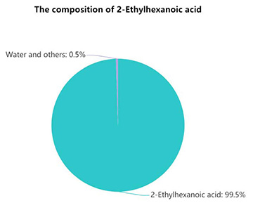 Значение содержания представляет собой процентное содержание активного ингредиента в образце. Чистота обычного 2-этилгексановая кислота составляет от 99,0% до 99,8%, что определяется с помощью хроматографии.